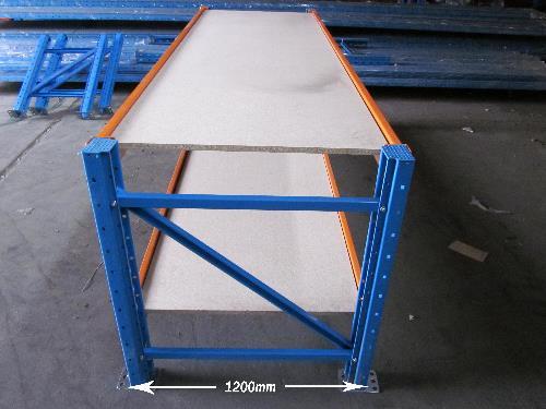 Heavy-duty adjustable workbench built from pallet racking components — ideal for packing stations, assembly areas and workshop benches.