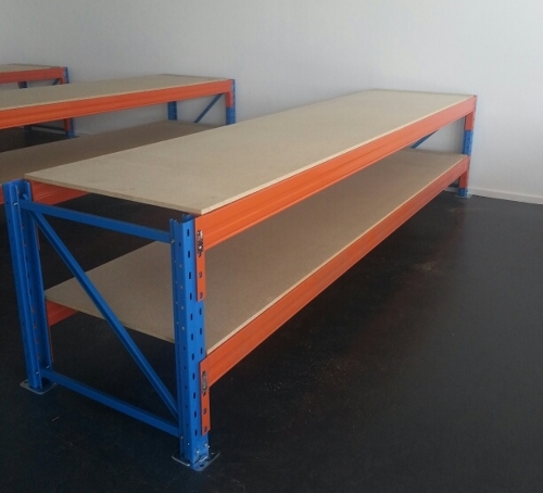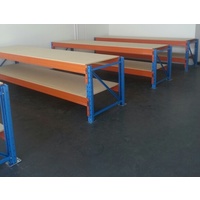 This long-span workbench system uses pallet-racking-style uprights and beams, giving significantly higher strength than traditional bolt-together benches while remaining easy to install and adjust. It is an ideal solution for warehouses needing durable workstations without custom fabrication.